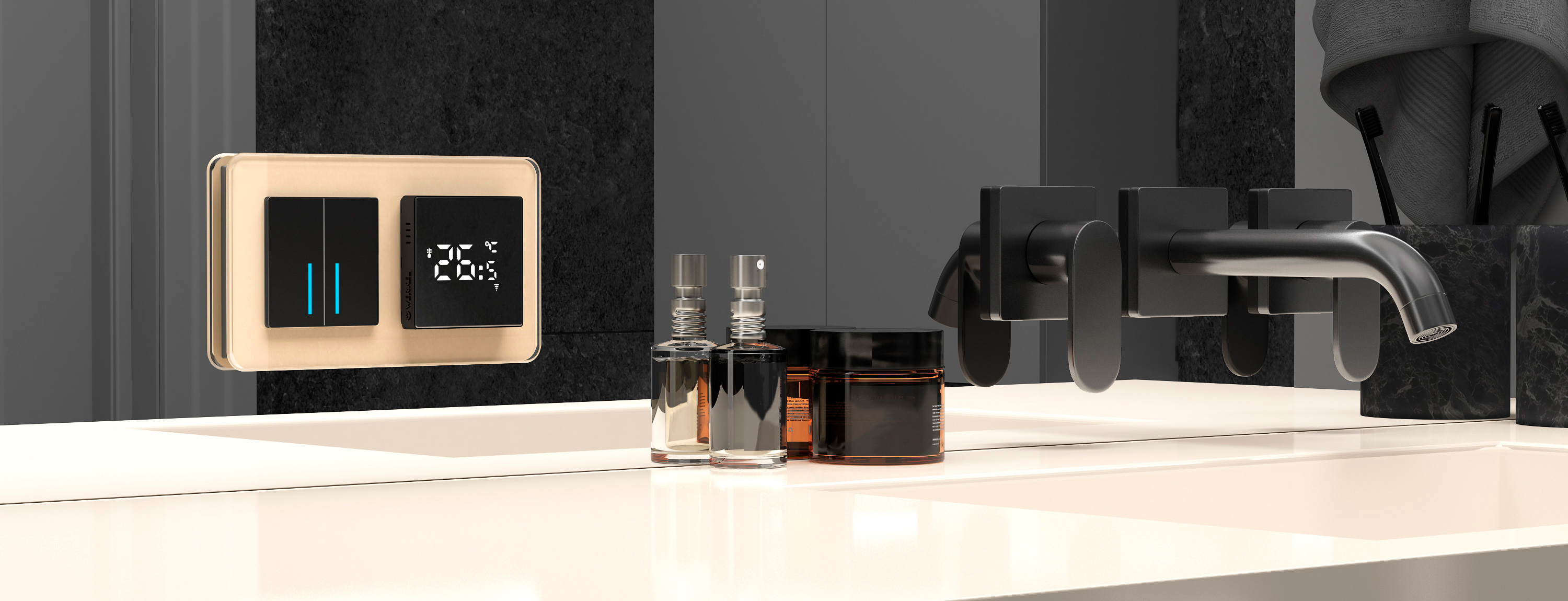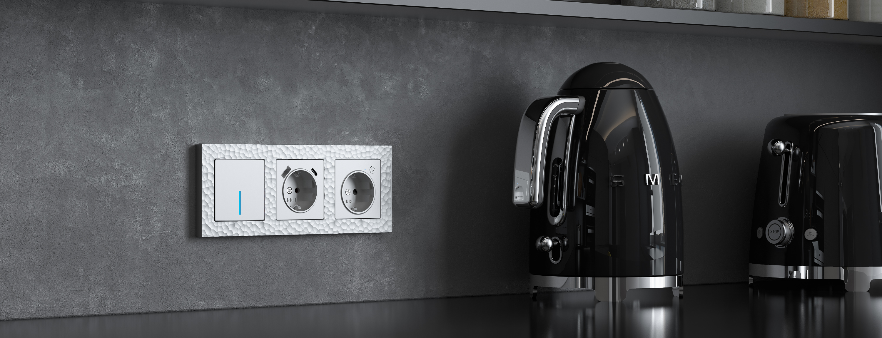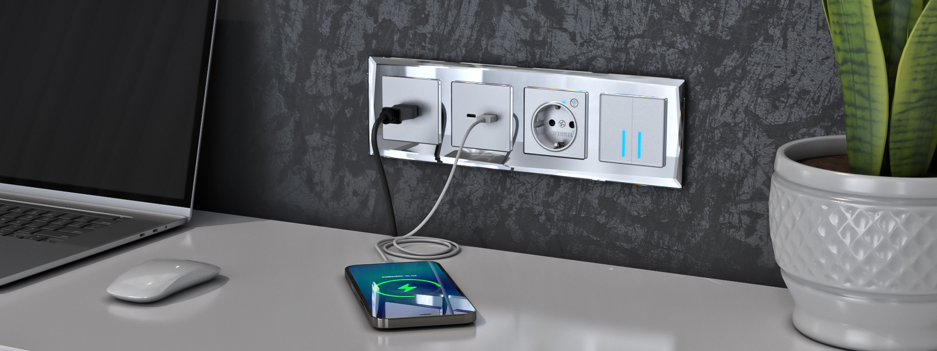 Выключатель двухклавишный проходной с подсветкой серебряный матовый