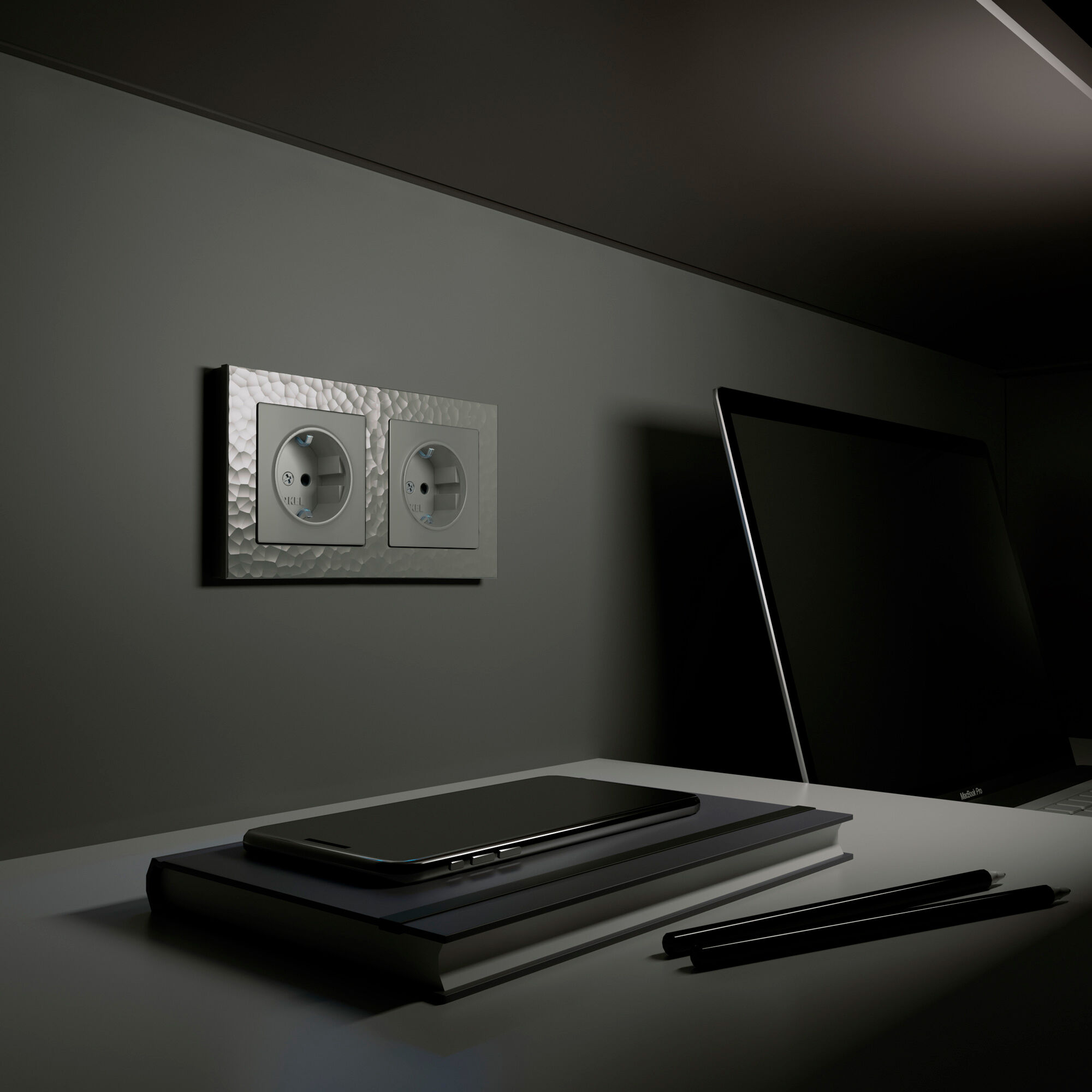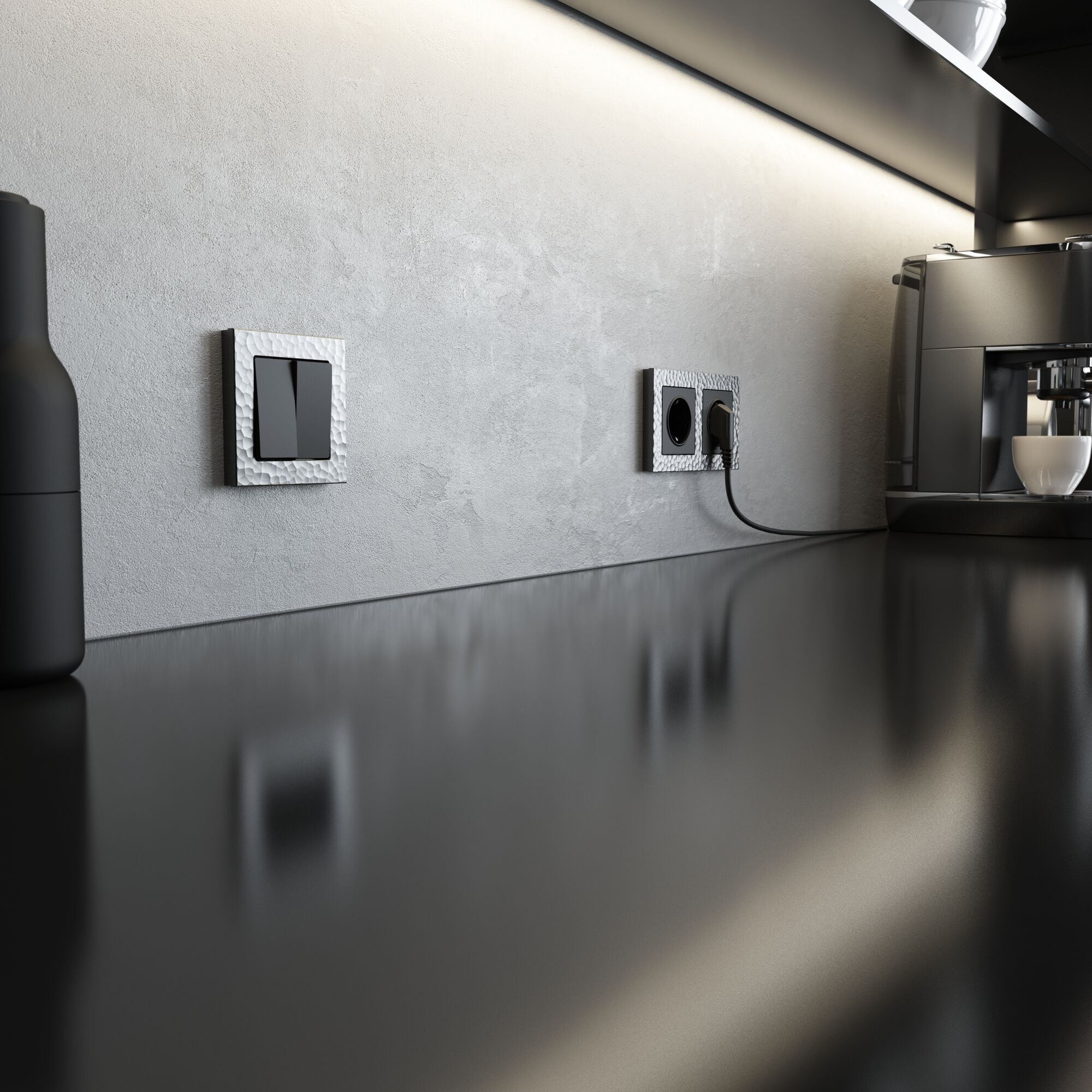 Серия электроустановочных изделий Hammer — это уникальное сочетание природной эстетики и современной функциональности. Её фактура, вдохновлённая естественными текстурами камня, создаёт поразительный визуальный эффект: на первый взгляд она кажется простой и лаконичной, но при ближайшем рассмотрении раскрывается сложной игрой рельефа и оттенков.