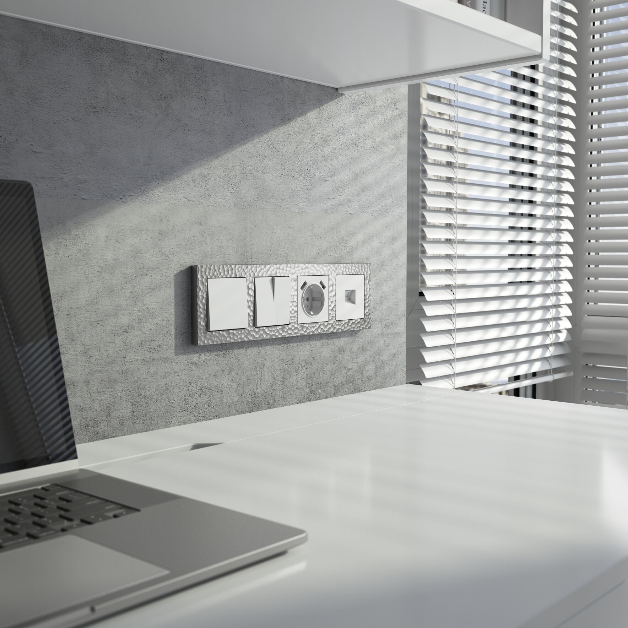 Серия электроустановочных изделий Hammer — это уникальное сочетание природной эстетики и современной функциональности. Её фактура, вдохновлённая естественными текстурами камня, создаёт поразительный визуальный эффект: на первый взгляд она кажется простой и лаконичной, но при ближайшем рассмотрении раскрывается сложной игрой рельефа и оттенков.