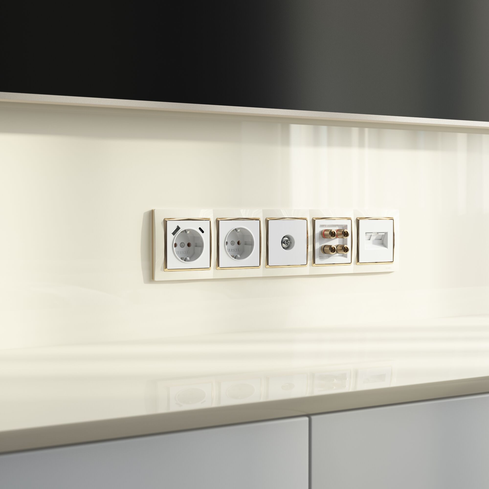 Рамка из поликарбоната на 5 постов Snabb слоновая кость/золото W0051932.
