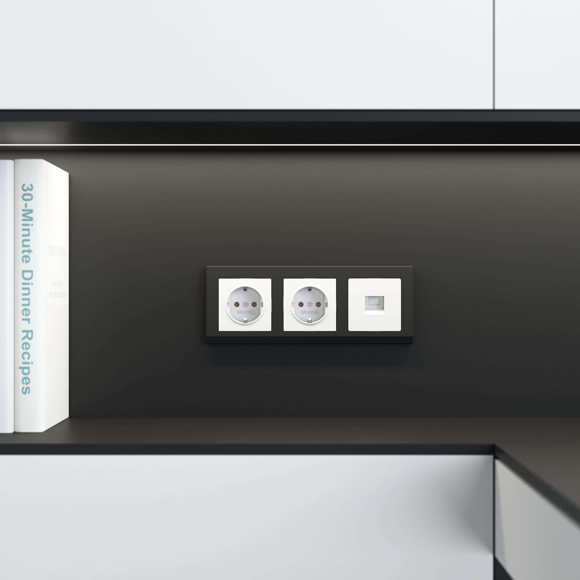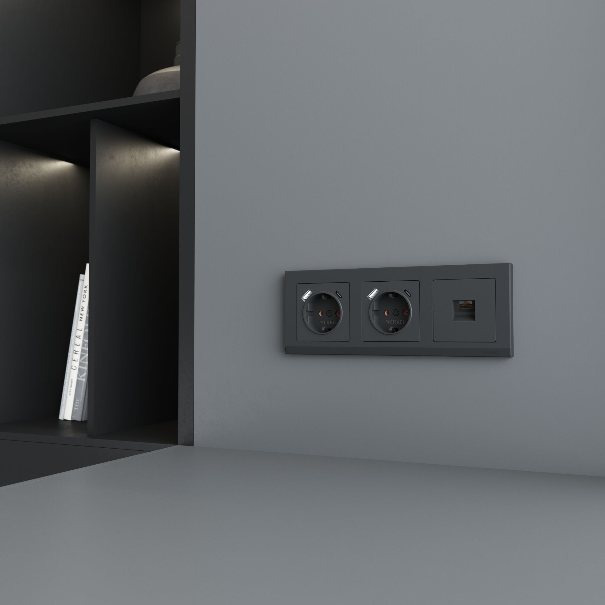 Коллекция Stark представлена моделями от одного до пяти постов, а также рамкой для двойной розетки. Коллекция совместима с любыми встраиваемыми механизмами Werkel.