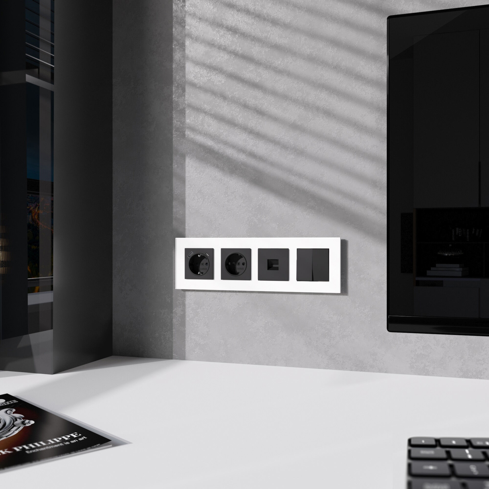 Внешняя лицевая панель выполнена из высококачественного поликарбоната, устойчивого к высоким температурам. Встраиваемая розетка с заземлением совместима со всеми рамками из коллекций Werkel™, характеризуется удобством использования и обеспечивает надежный контакт.
