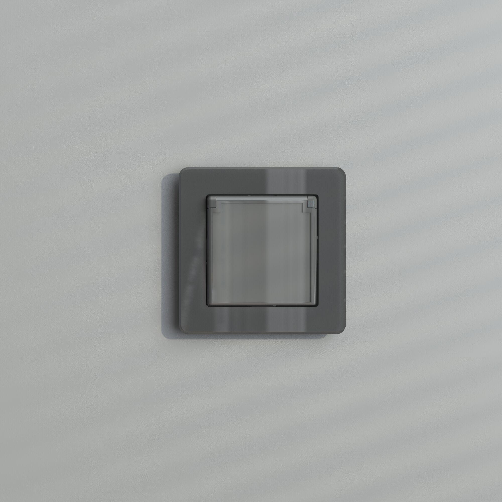 Розетка влагозащ. с зазем. с защит. крышкой и шторками (графит акрил)