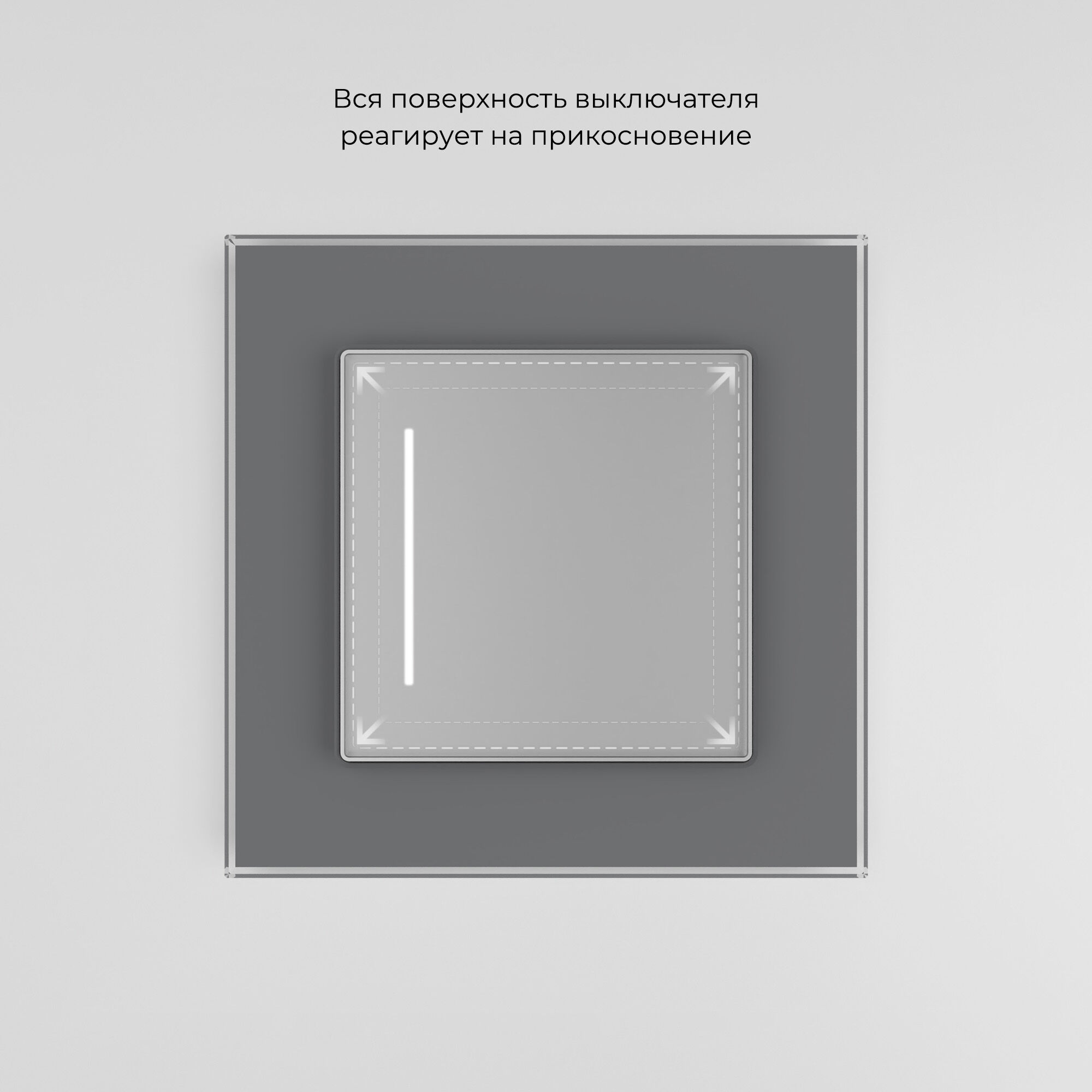 Сенсорный выключатель имеет стеклянную поверхность Soft-touch, которая обладает приятным тактильным эффектом. За счет матового фактурного покрытия лицевая панель не бликует и на ней не остается следов.