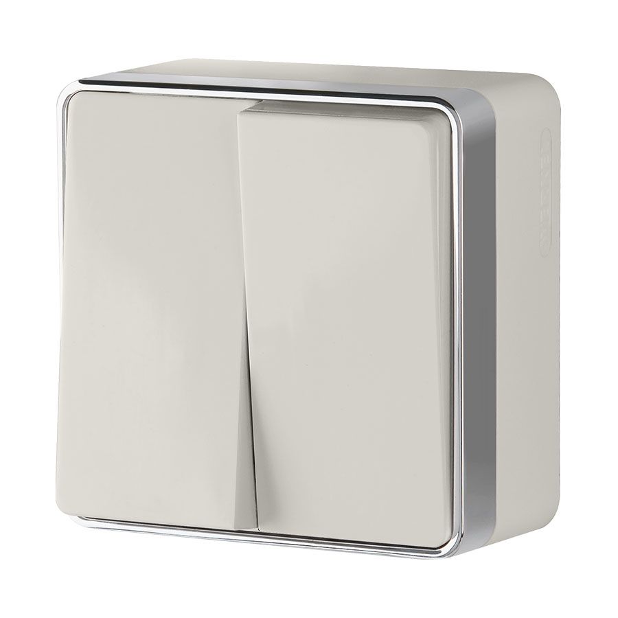 Минималистичный накладной двухклавишный выключатель Werkel цвете слоновая кость — надёжное и стильное решение для управления освещением в современном интерьере.