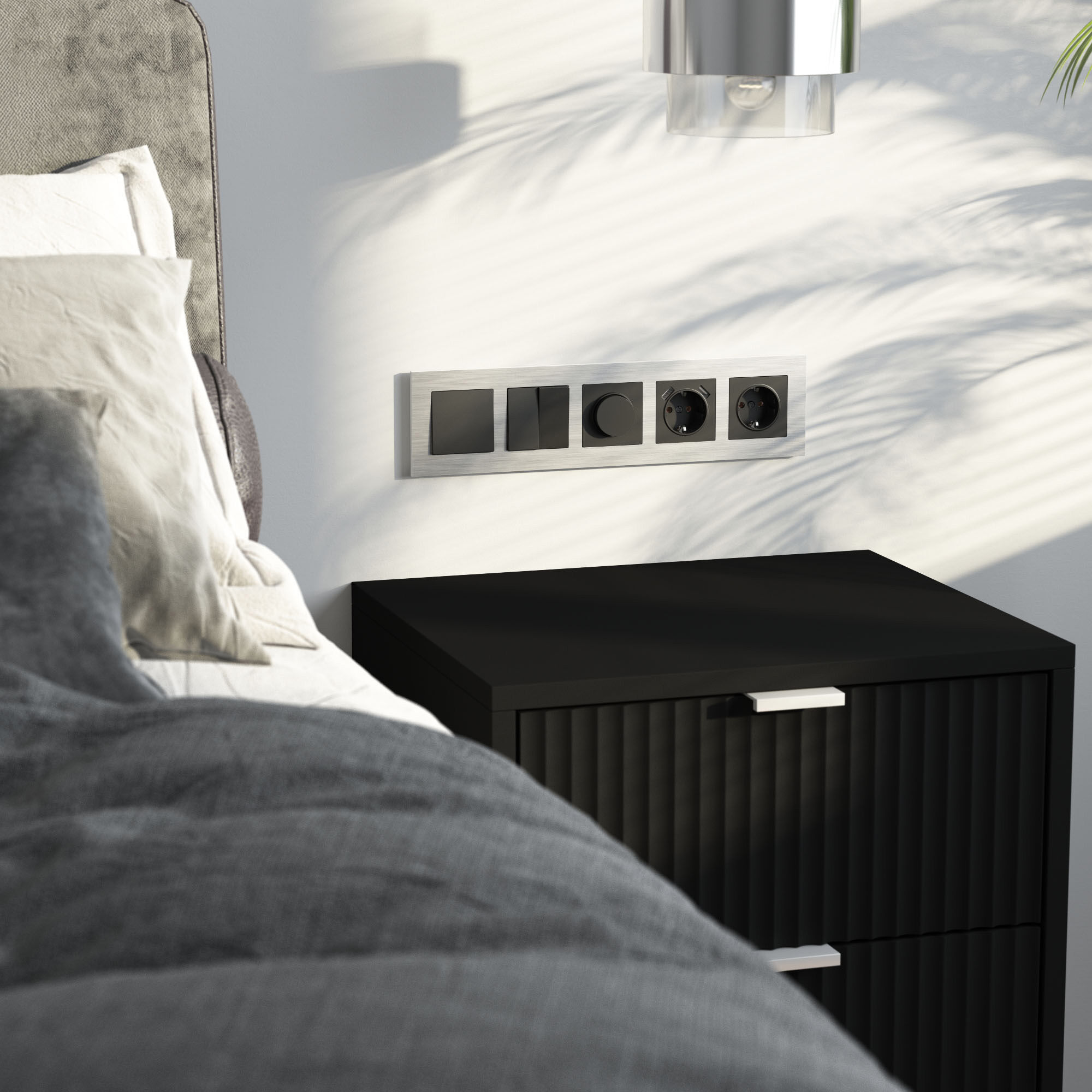 Коллекция AluMax пополнилась рамками на 5 постов в цветах: шампань, алюминий и черный алюминий. Пятипостовые рамки – функциональное и эстетичное решение для комплексного оснащения интерьера электроустановочными изделиями.